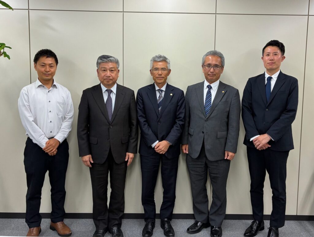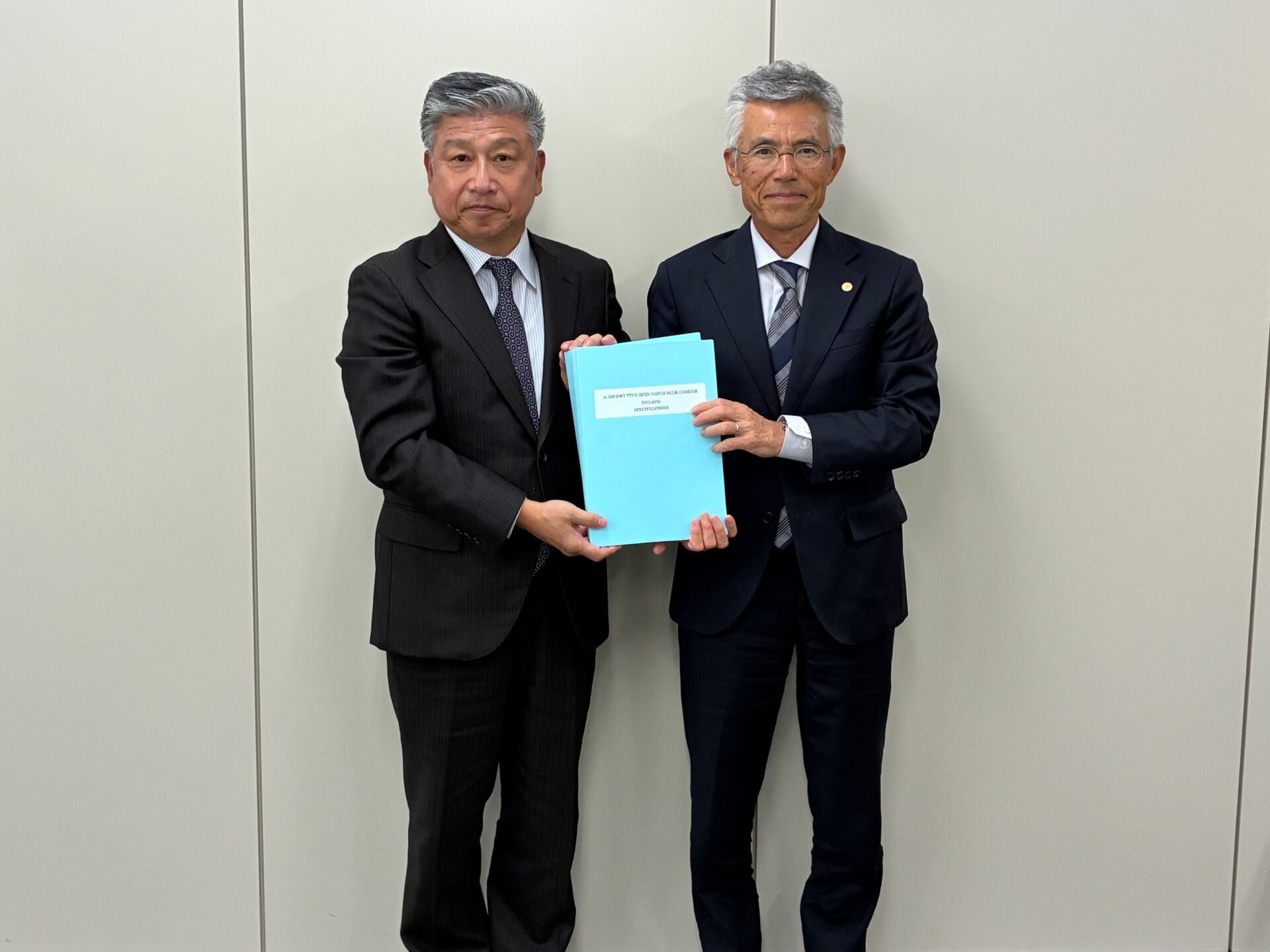 新来島どっく 代表取締役社長の森様、執行役員の松浦様、係長の川合様が来社され、Sno.6370番船の契約調印式が行われました。